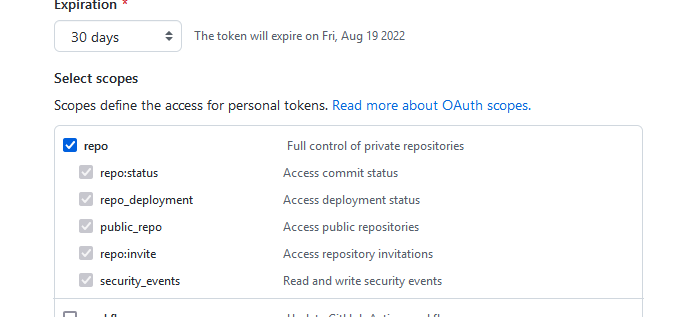 - 创建Token至少选择以下权限